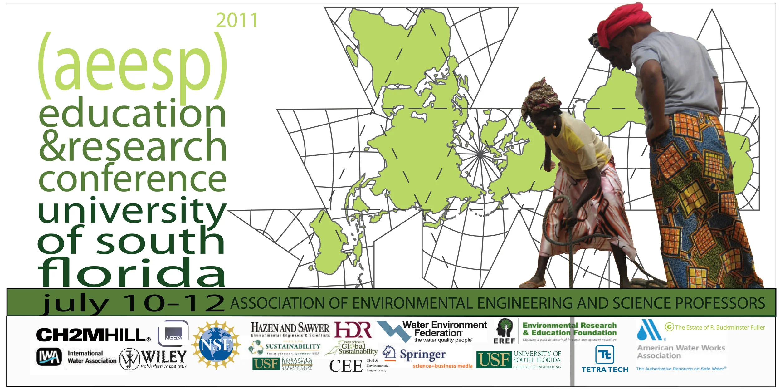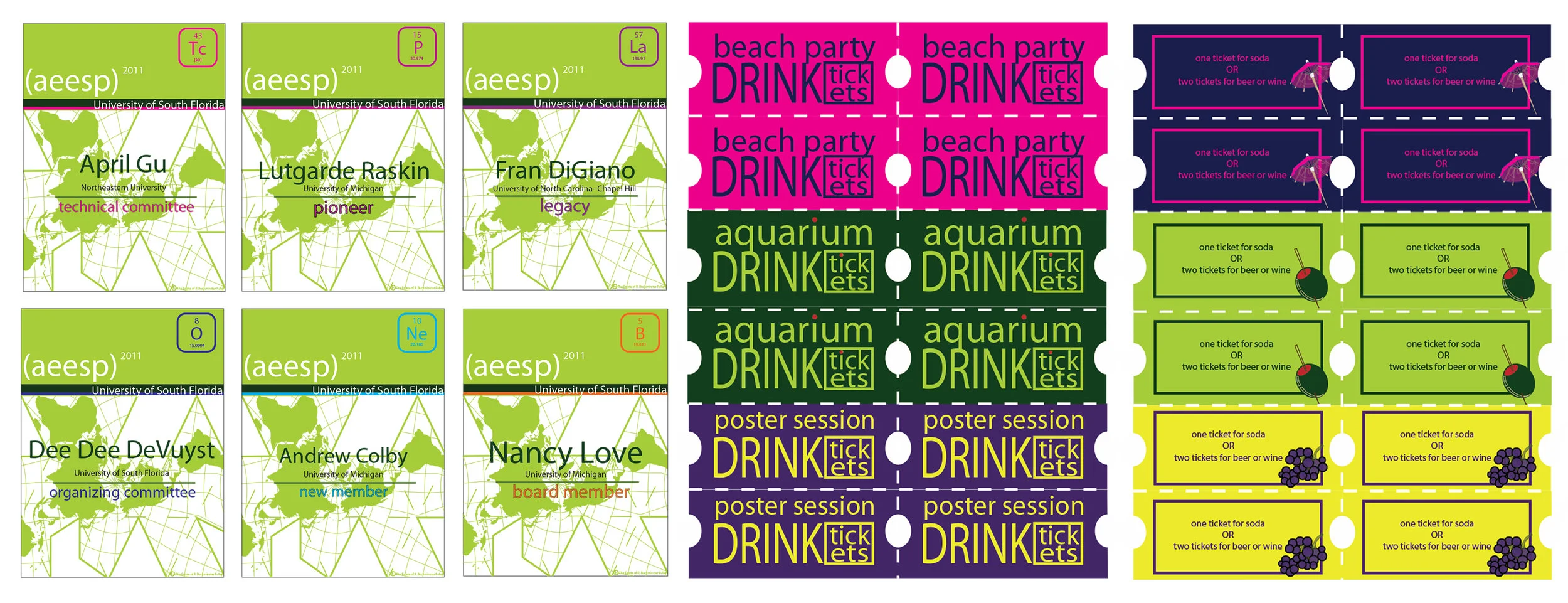 In 2011, I was commissioned by the Department of Engineering at University of South Florida to design all marketing materials for the 2011 AEESP (Association of Environmental Engineers and Science Professors) conference hosted in Tampa, Florida. I worked with engineering professors to develop the central message and focus of the conference on the evolving role of environmental engineering in international development. The result included banners, signage, interactive posters, conference schedules, name tags, and drink tickets.