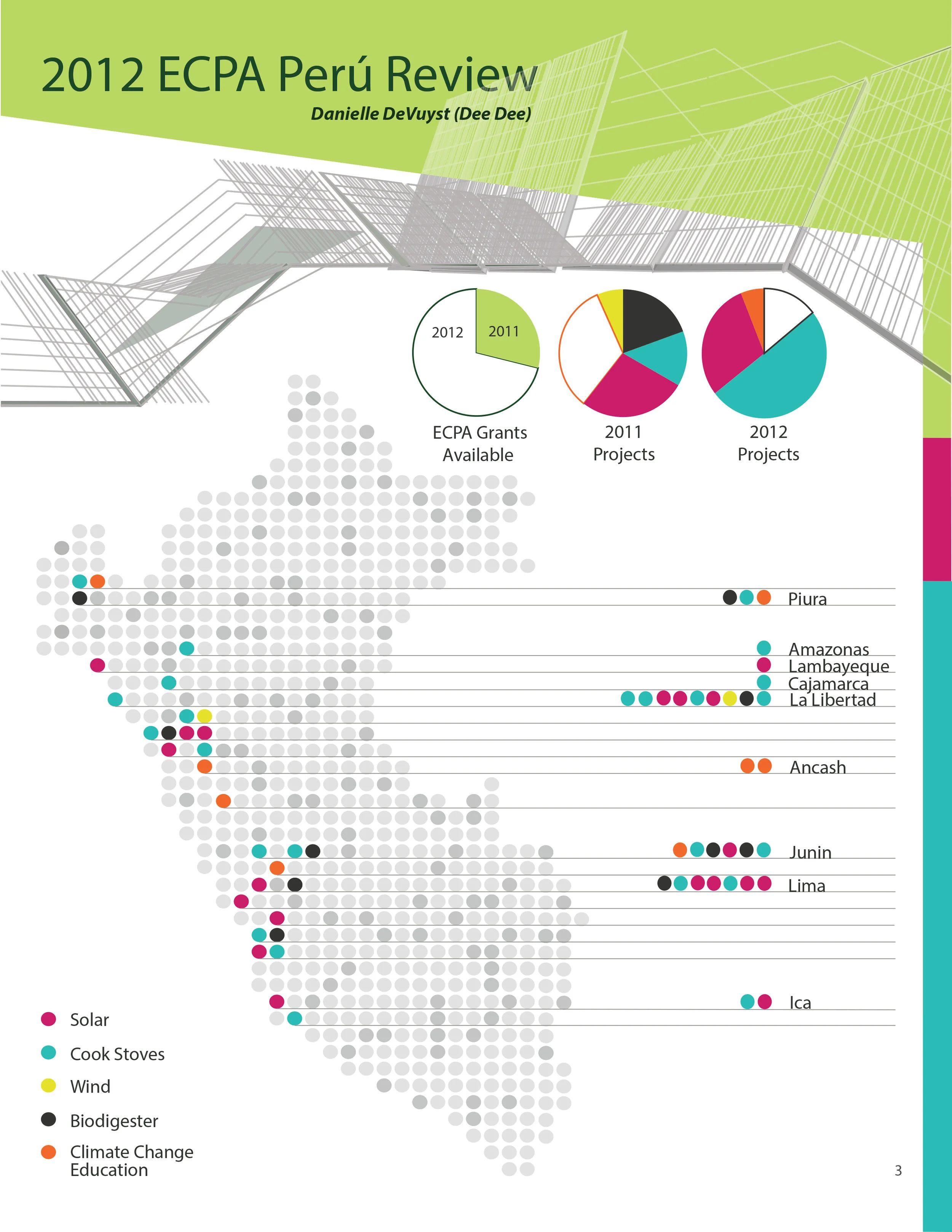 During my Peace Corps service in Peru, I was a member of the ECPA (Energy and Climate Partnership of the Americas) committee serving as a resource to 200+ volunteers on climate change and renewable energy technologies. I was the designer, co-author, and editor of the ECPA newsletter and authored articles on underground greenhouses, improved cookstoves, solar energy, and biodigestors.
